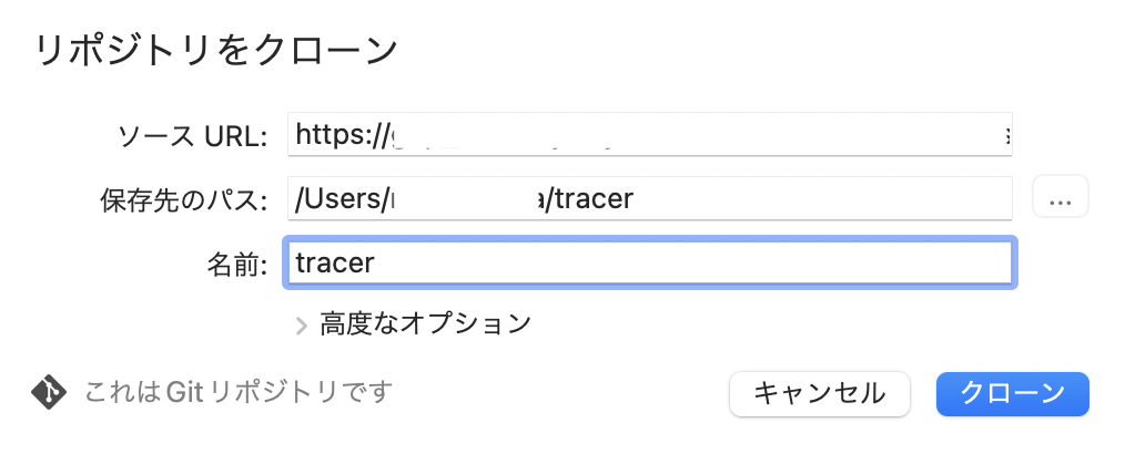 ここが一番のポイントです。ソースURLにはクローンしたいURLにアクセストークンを以下場所に追加します。([]は不要です。) https://