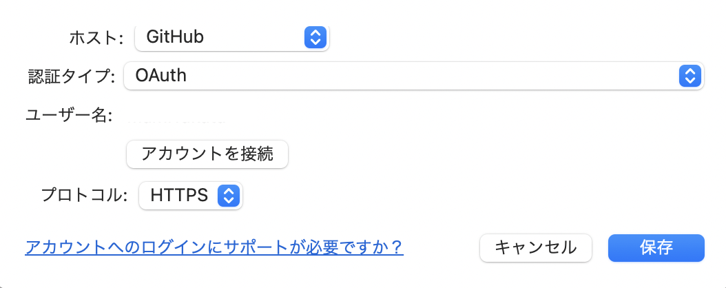以下設定でアカウント接続します。(Githubのページで認証作業をして下さい)