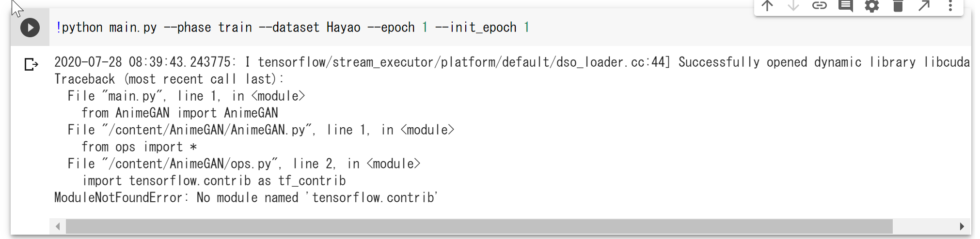 !python main.py --phase train --dataset Shinkai --epoch 1 --init_epoch 1
