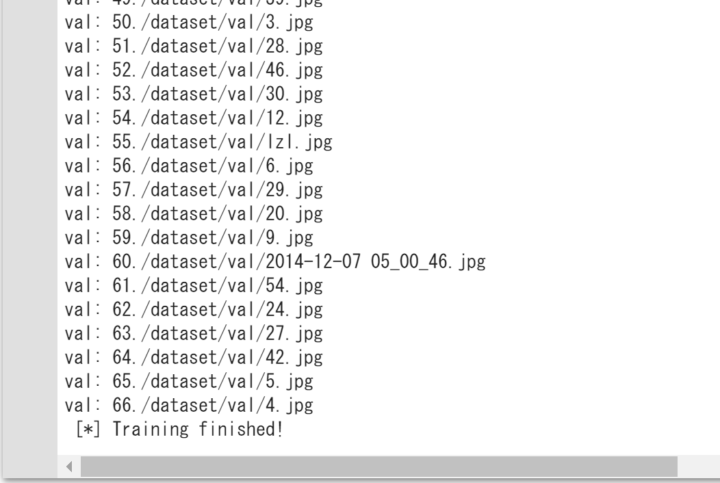 以下を入力してトレーニング開始します。(長いです40分程度)