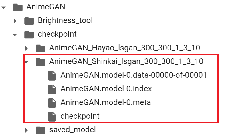 データは以下にあります。これを作業フォルダに展開していきます。 https://github.com/TachibanaYoshino/AnimeGAN/releases