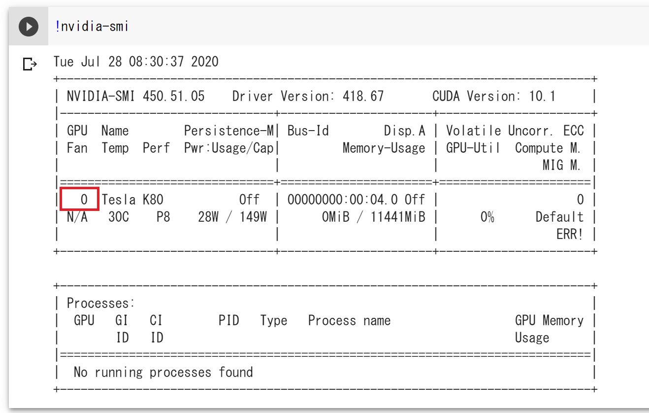 \["CUDA\_VISIBLE\_DEVICES"\]」を1→0に変更します。