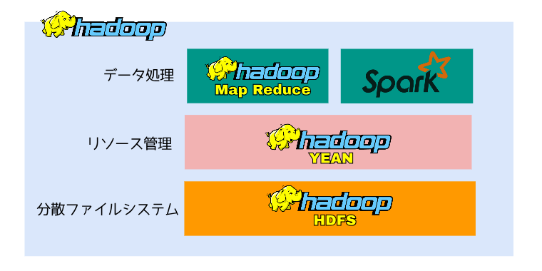 大量のデータを並行して処理するフレームワークです。沢山ありますが、MapReduceとSparkが有名です。MapReduceとSparkについて次に説明していきます。
