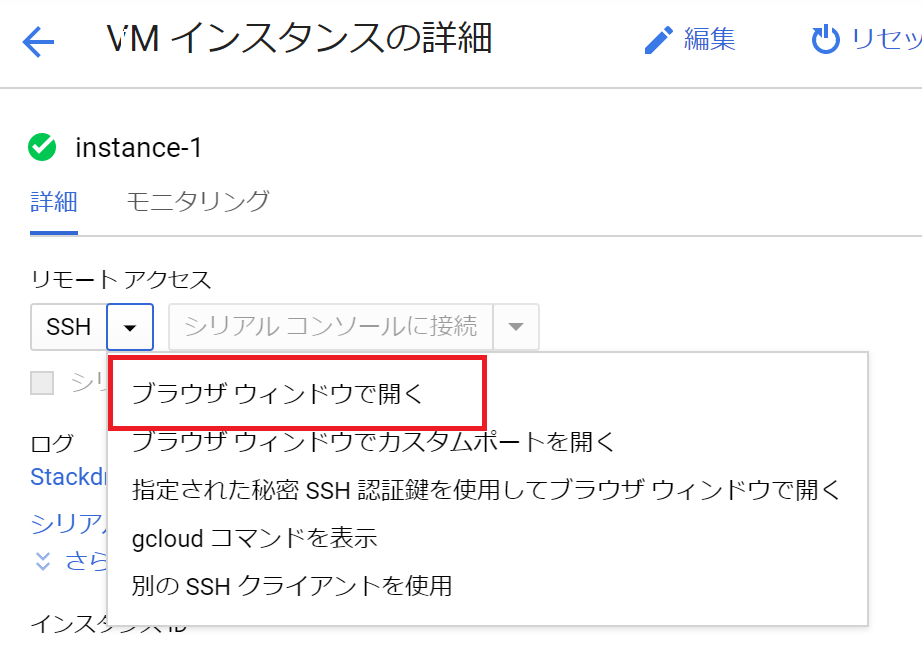 ②VMインスタンスにSSH接続して設定する