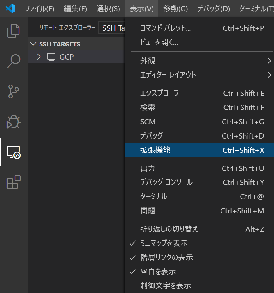 VSCodeの拡張機能を表示します。(Ctrl+Shift+X)