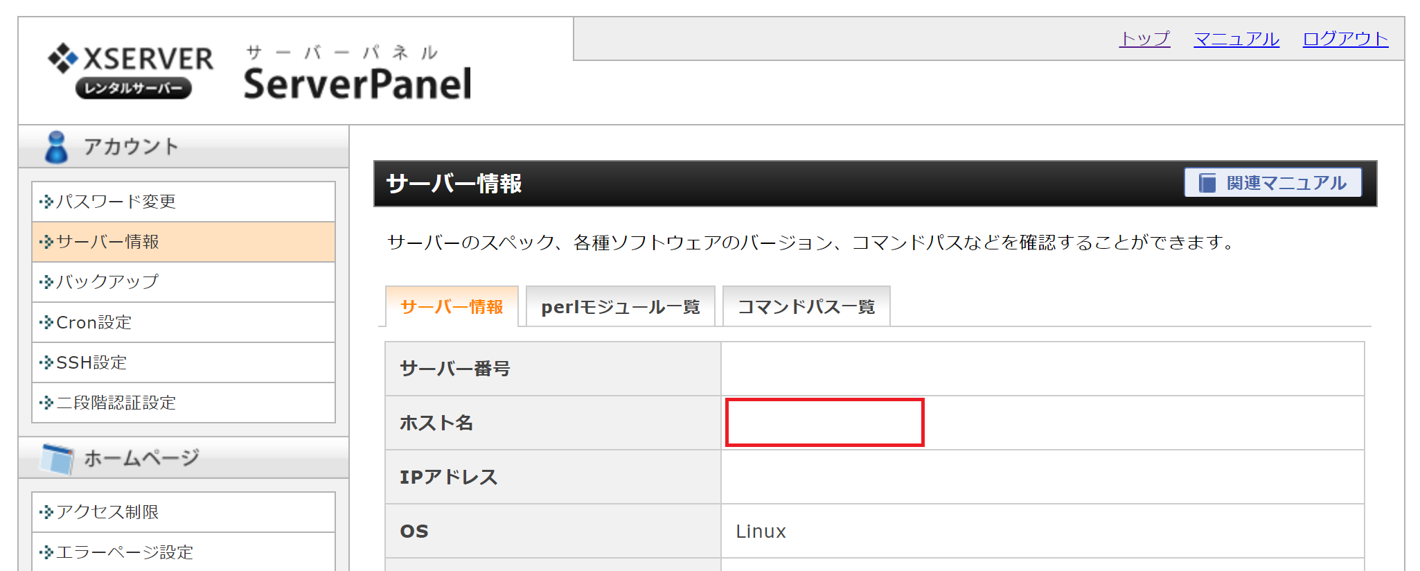 HostNameはサーバー情報にあるホスト名を入力してください。