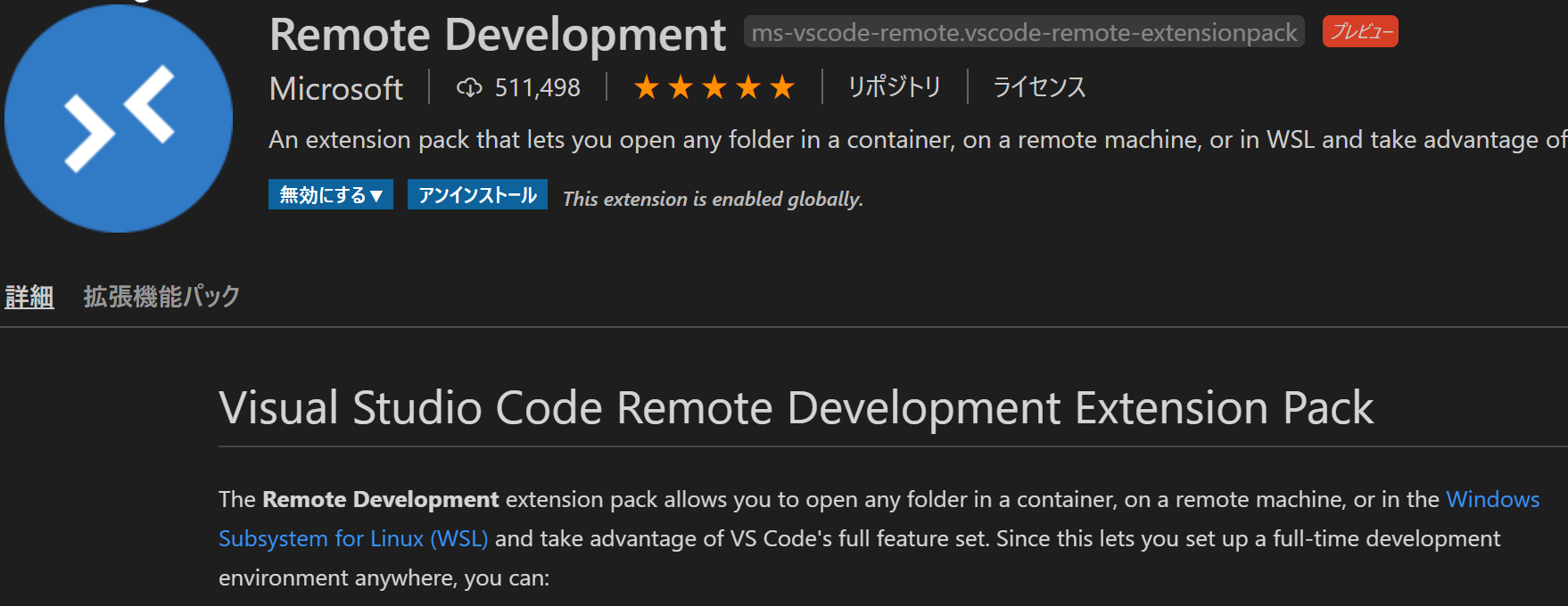 VSCodeに拡張機能 RemoteDevelopmentをインストール