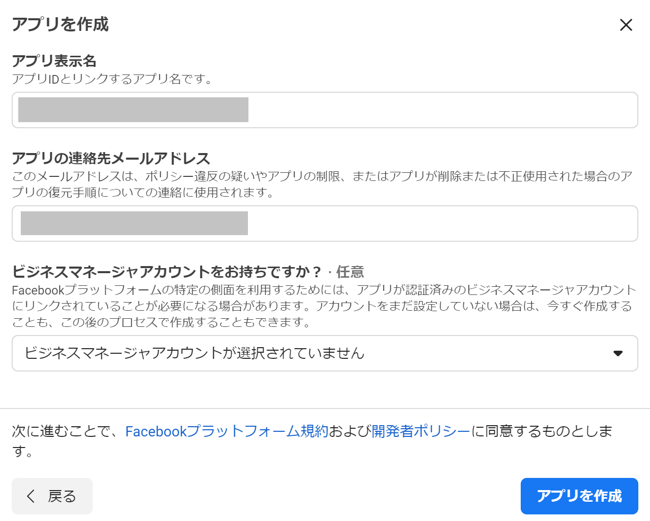 以下に適切に入力して、アプリを作成します。