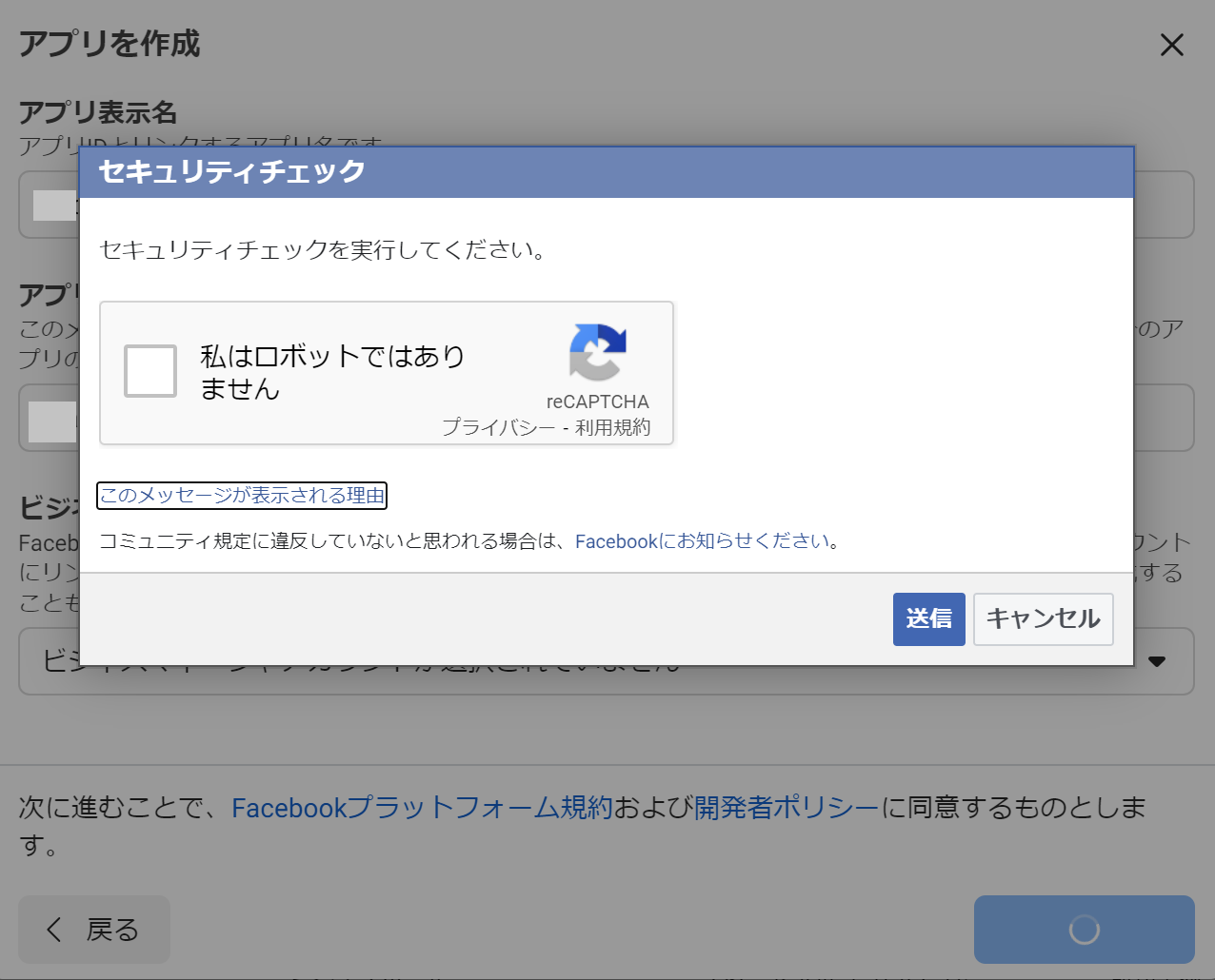 ロボットではないにチェックをして先に進みます。