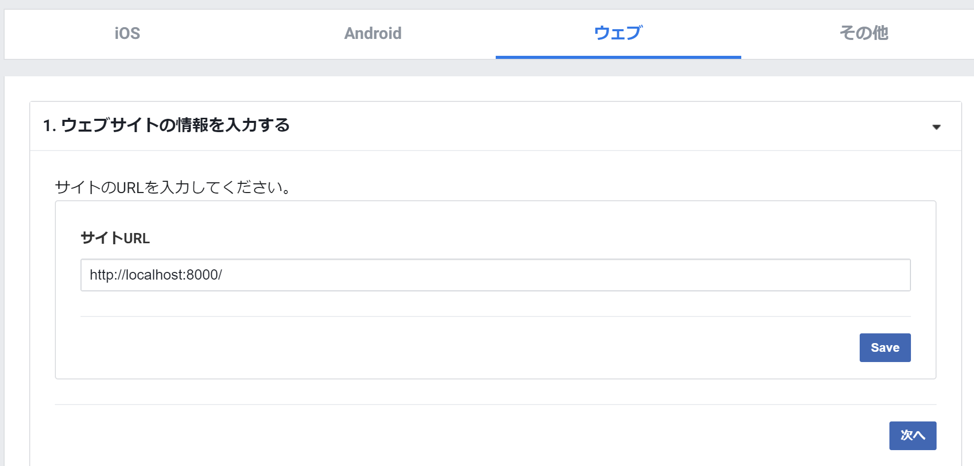 ウェブサイトに入力で適切なURLを入れます。今回はテストなので「http://localhost:8000/」を入力します。クイックスタートは下に続きますが、、とりあえずこれだけで良さそうなので、おしまいにしました。