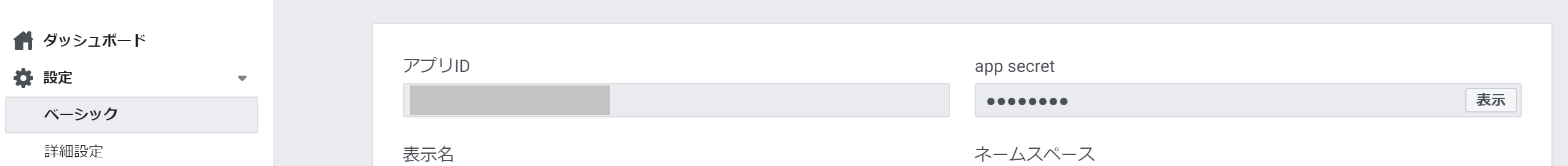 アプリIDとapp secretを後で使います。